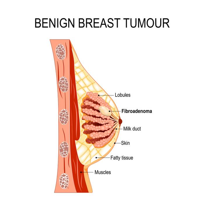 Фиброаденомой молочной железы называют доброкачественное опухолевидное образование, которое возникает в результате очаговой гиперплазии протоков с фиброзированием соединительной ткани. То есть при фиброаденоме происходит разрастание и железистой, и соединительной ткани.